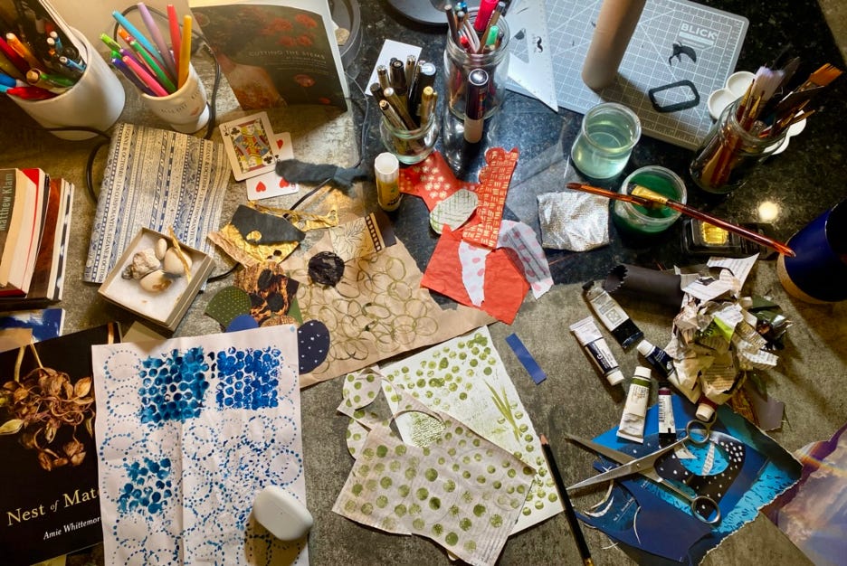Congrats on your new home! I do collage as a hobby, and you're exactly right about the way it allows us to get out of our heads. I find it so relaxing to work intuitively and allow myself not to second guess decisions in the same way that I do when trying to write poems. As you said, it's a great way to rest from language while also experiencing the pleasure of making something new. Thanks for this!